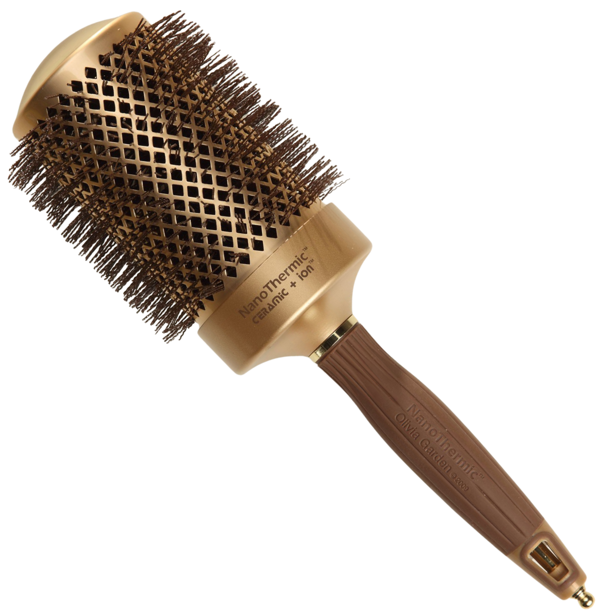 מברשת מקצועית גדולה, בקוטר 6.4 ס"מ, מהדורת ה-50 שנה של Olivia Garden NanoThermic, חידוש יוצא דופן בעולם מברשות השיער, המשלב טכנולוגיה מתקדמת, חומרים איכותיים ונוחות מירבית. מדובר במברשת שתוכננה במיוחד למעצבי שיער מקצועיים ולכל מי שמעוניין בתוצאה מושלמת של ייבוש, החלקה ועיצוב שיער בבית.