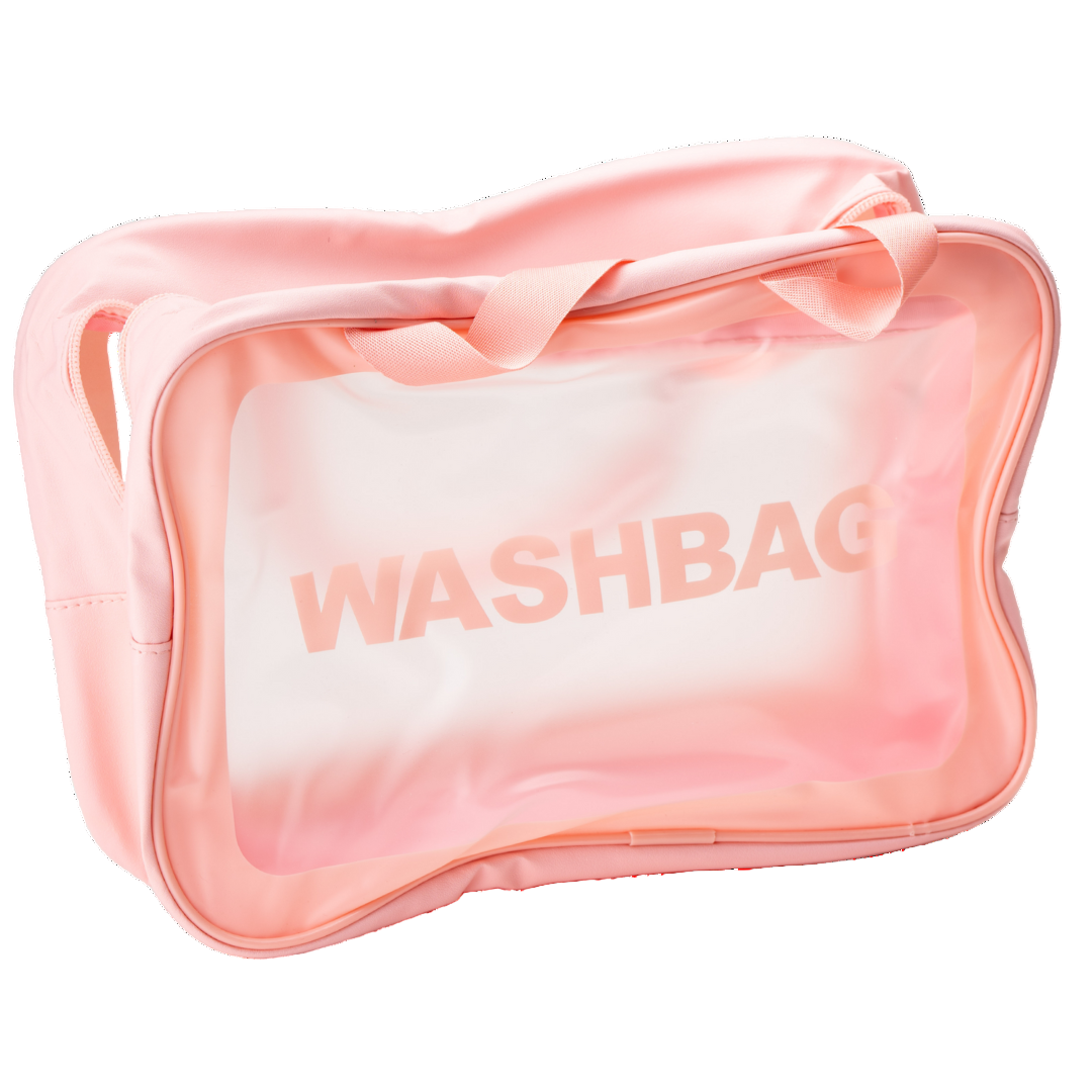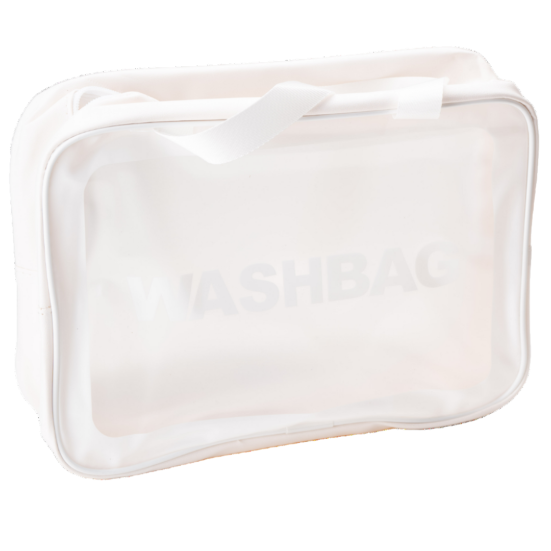 תיק רחצה שקוף בארבעה גוונים מרהיבים: לבן, תכלת, אפרסק ושחור.