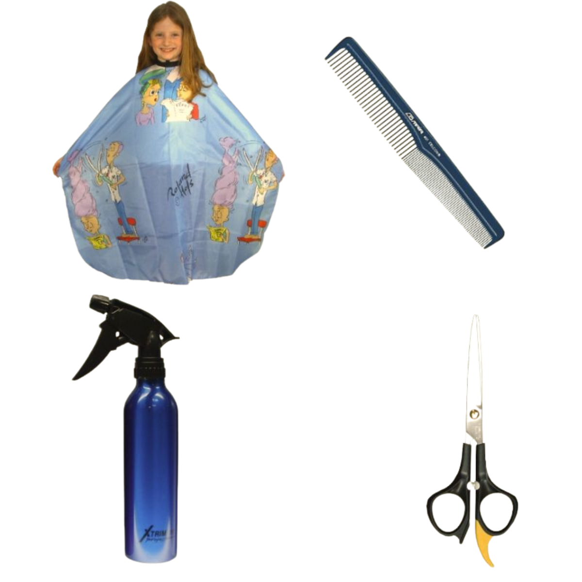 ערכה מיוחדת לתספורות ילדים, שמסופקת בנרתיק שקוף עם ידיות נשיאה נוחות. הערכה מיועדת להורים שמעוניינים לספר את ילדיהם באווירה הנינוחה של הבית. הסביבה המוכרת משרה על הילד וההורה תחושת רוגע ובכך מקלה על שניהם בהתמודדות עם תהליך התספורת, שעלול להיות מפחיד עבור 2 הצדדים המעורבים. הערכה המיוחדת כוללת מוצרים שעונים על כל צרכי ההורה המספר: מרסס מים איכותי מאלומיניום, שכמיית ילדים עם הדפס שובב ורענן, מסרק קומייר #401, מספרי תלמיד איכותיים, במידה "5.5 ומארז נשיאה שמאפשר לאחסן את הכלים בנוחות.