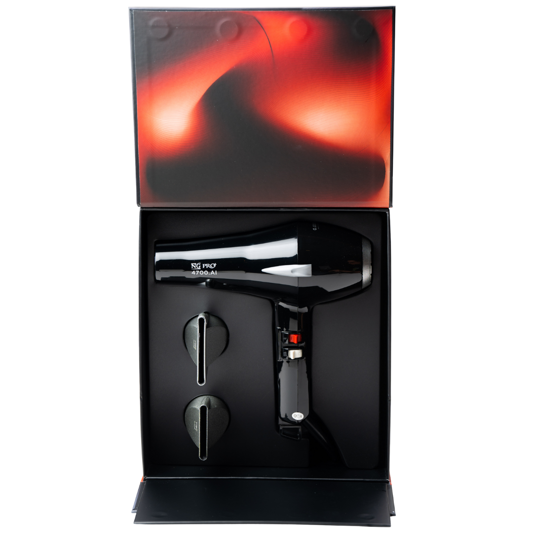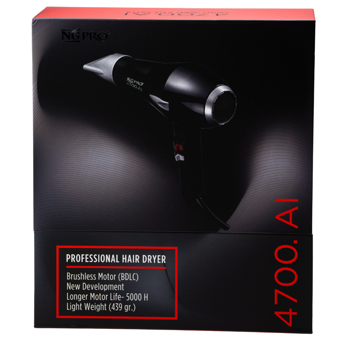 מייבש שיער גדעון 4700 NG PRO AI, מנוע BLDC Brushless, 2200W, משקל קל כ437-439 גרם, 2 פיות,. ייבוש מהיר ושקט בעיצוב מקצועי.