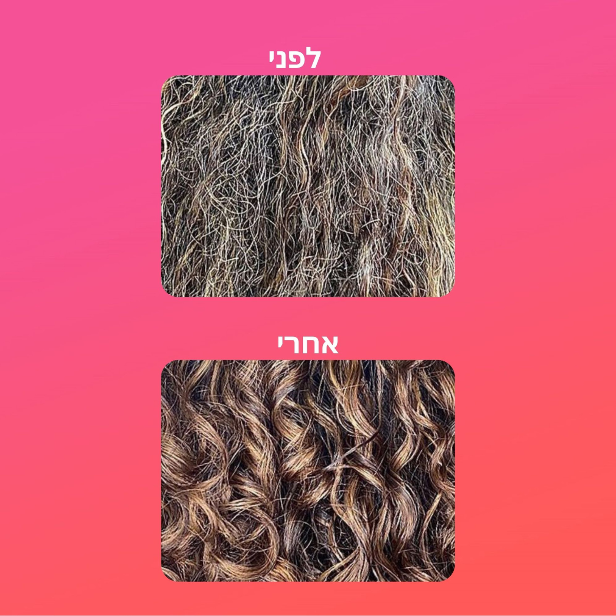 מרחו בצורה אחידה לתוך השיער מהקצוות ועד השורשים, לחיצה אחת בכל פעם.